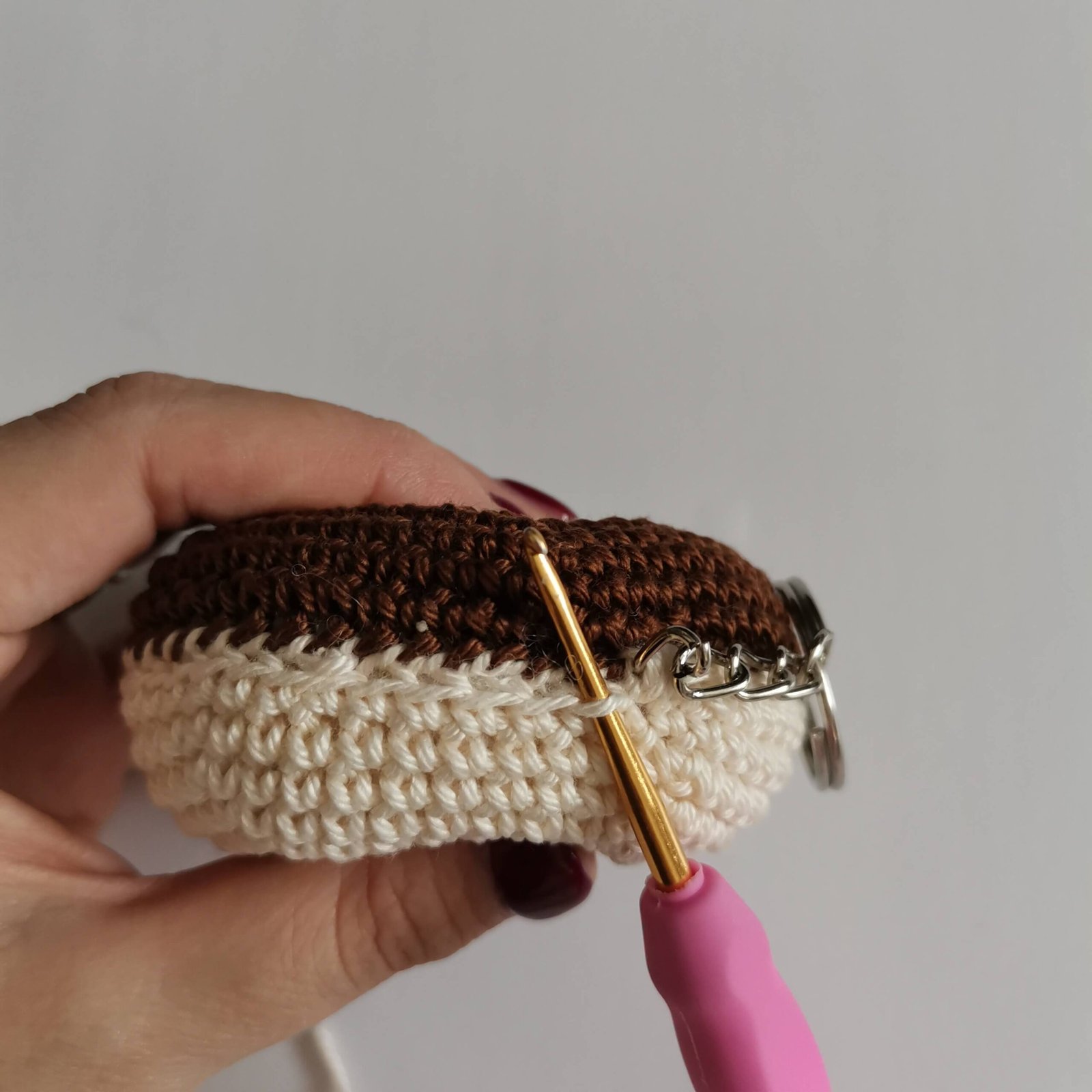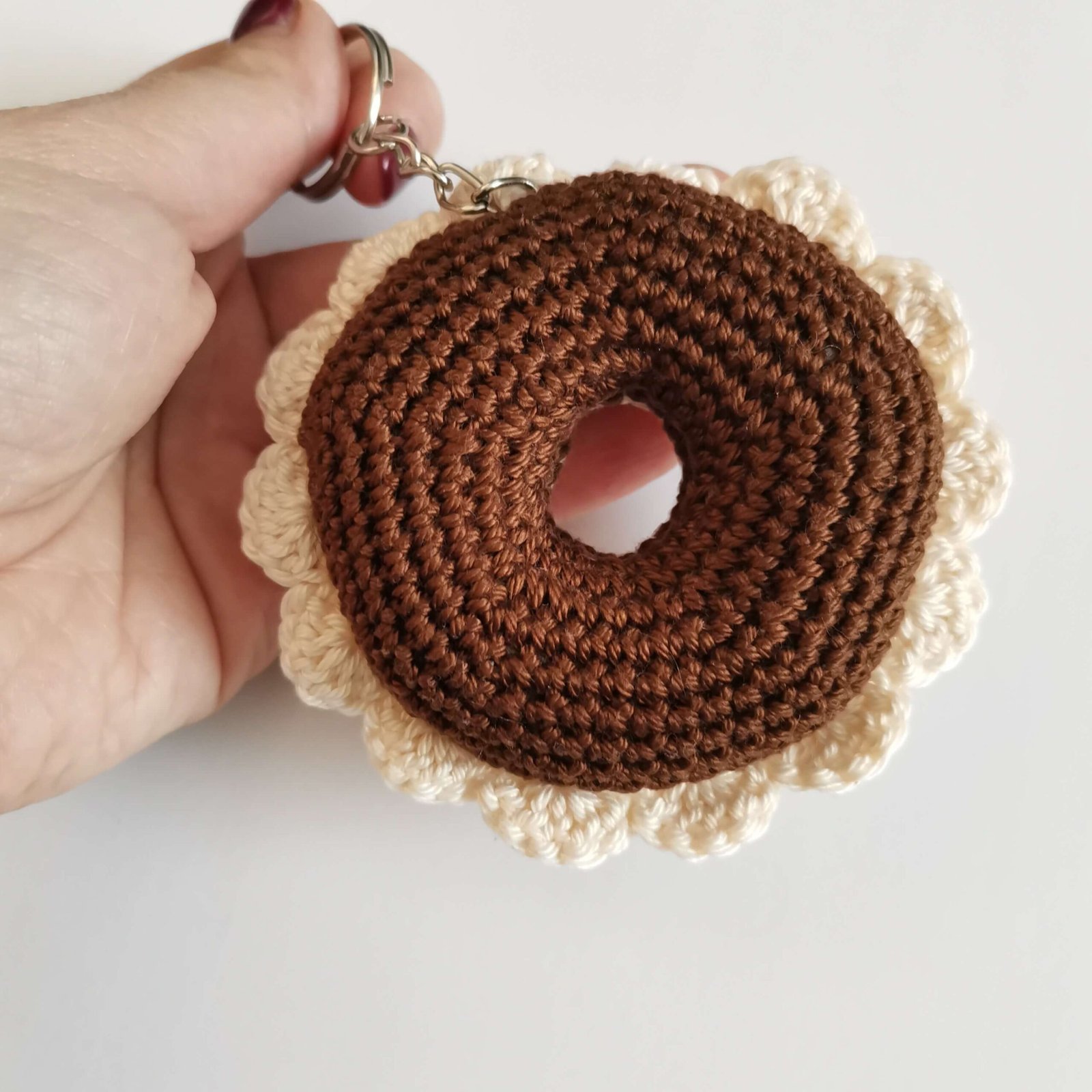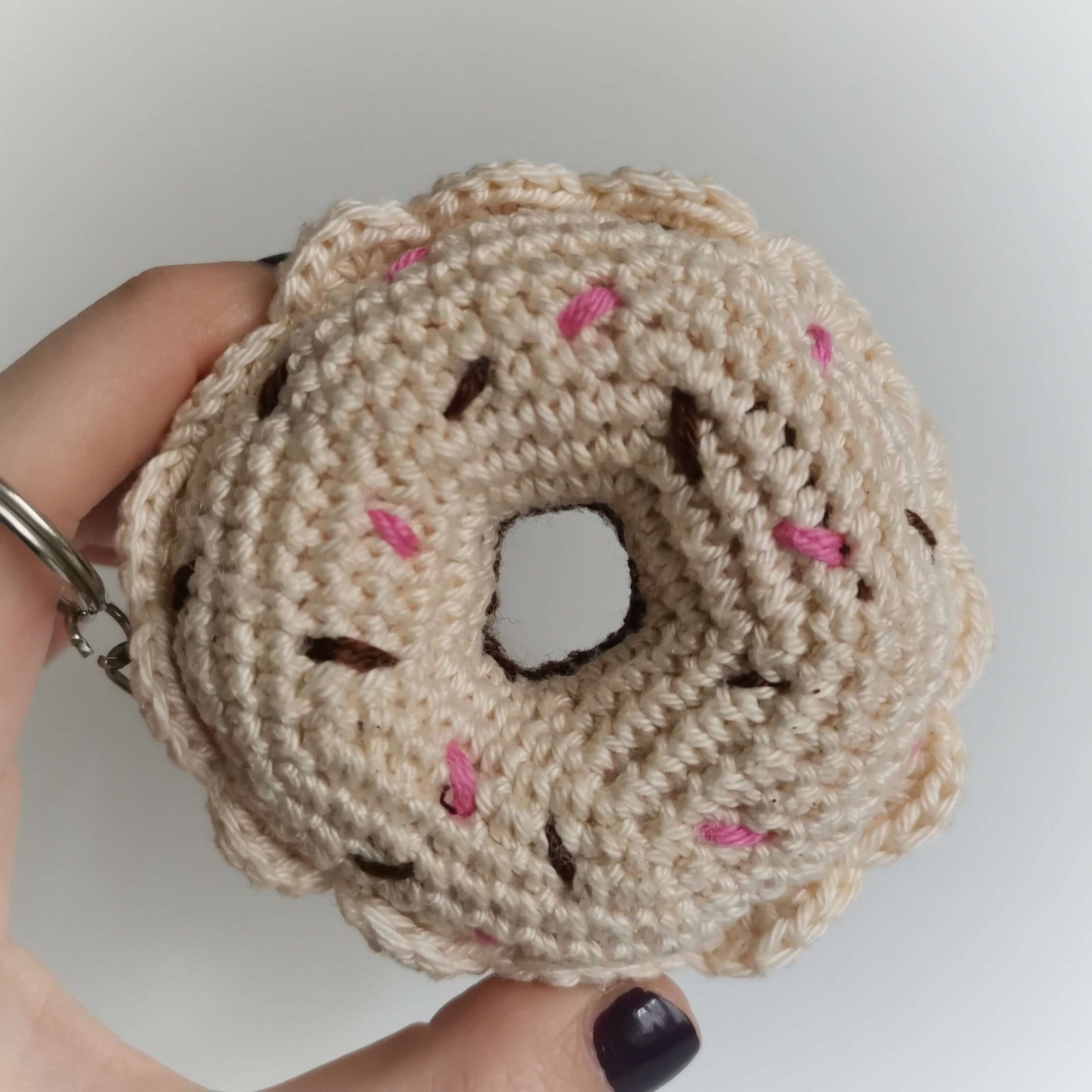 • Optional: Stitch markers and a keychain ring or pendant loop if you want to turn your donut into an accessory.