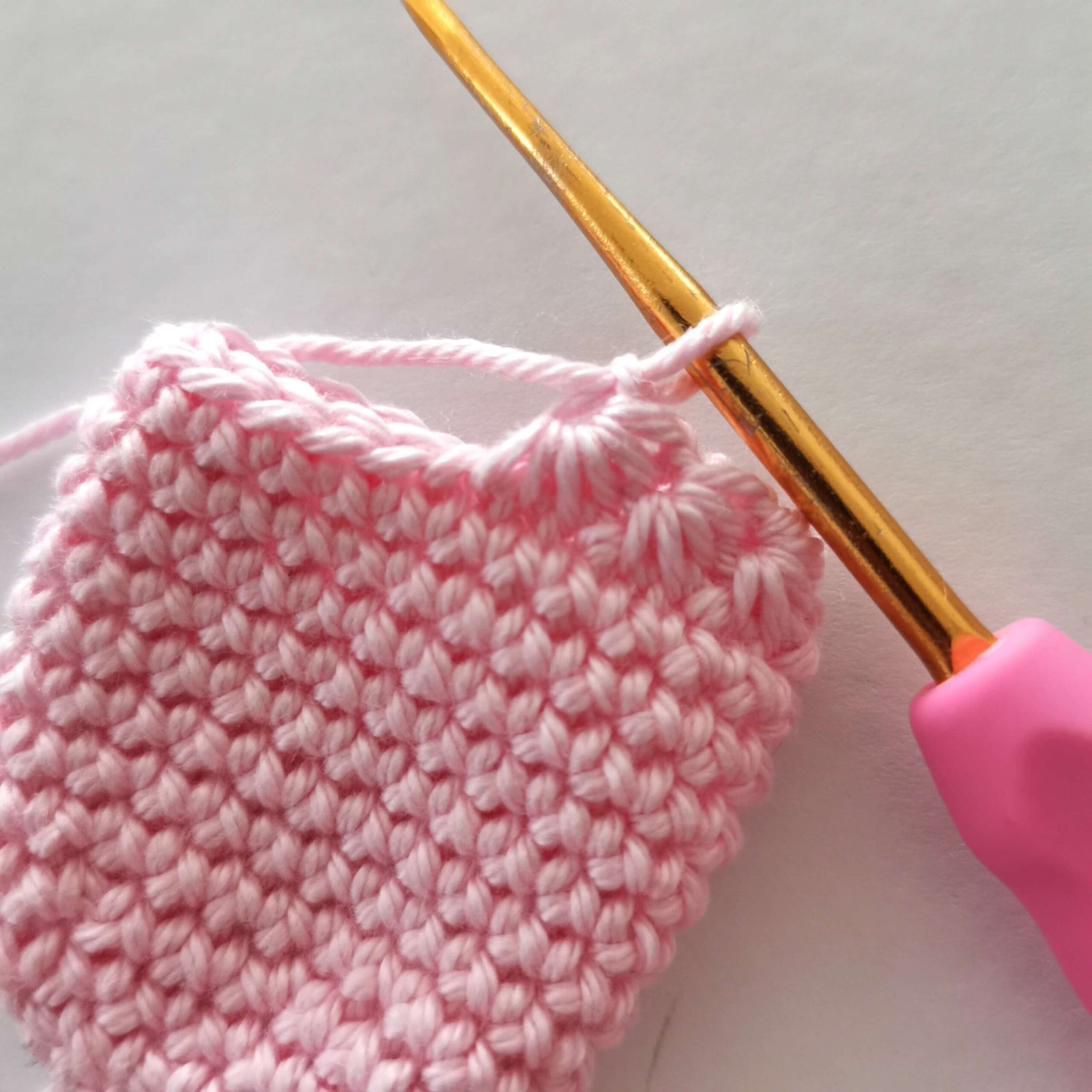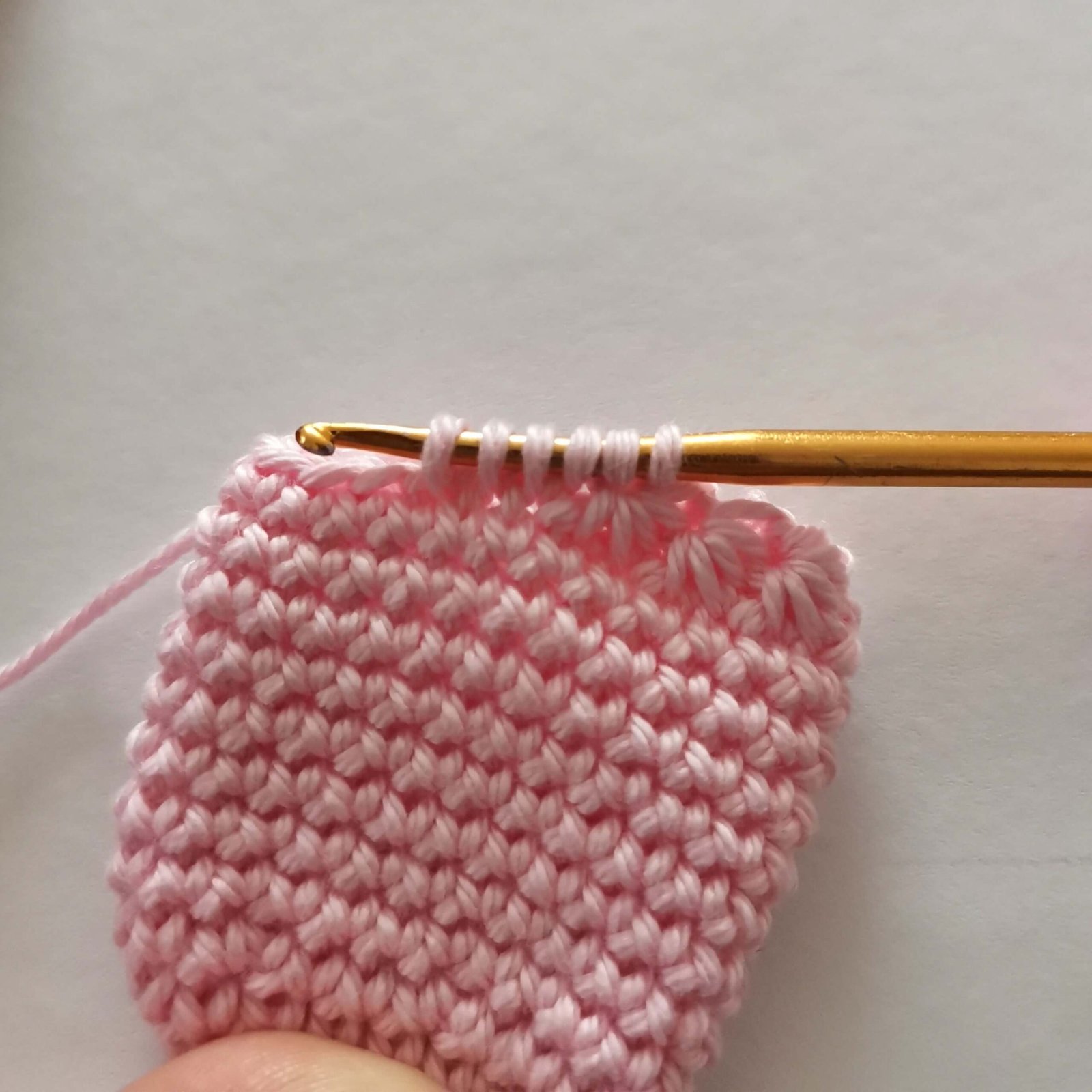 - Insert hook into the next stitch and pull up a loop (5 loops on hook).