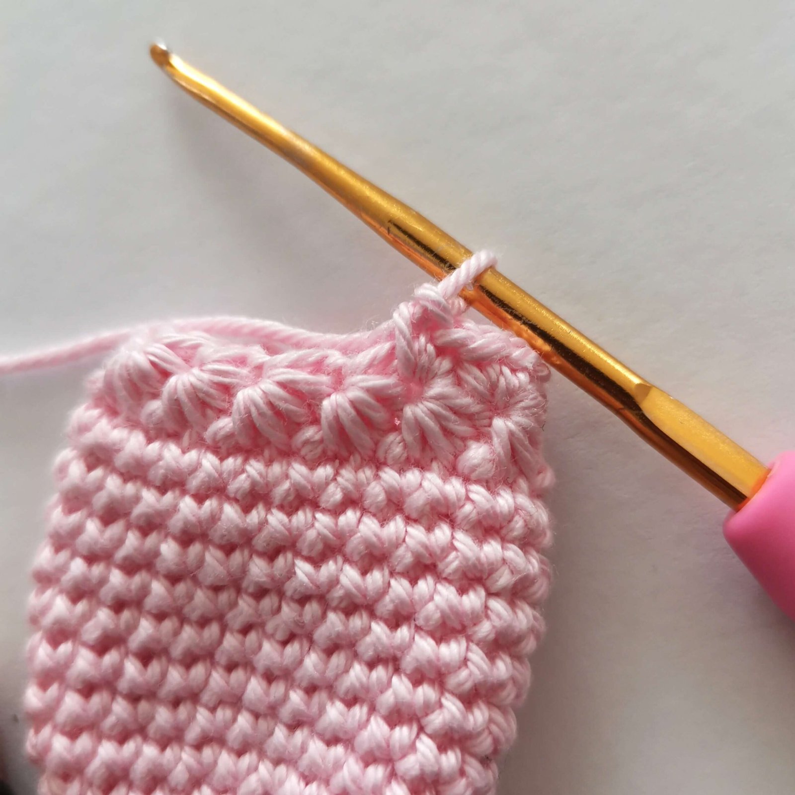 • In the next two rounds we will be making a modified star stitch in this free Easter crochet bunny pattern.