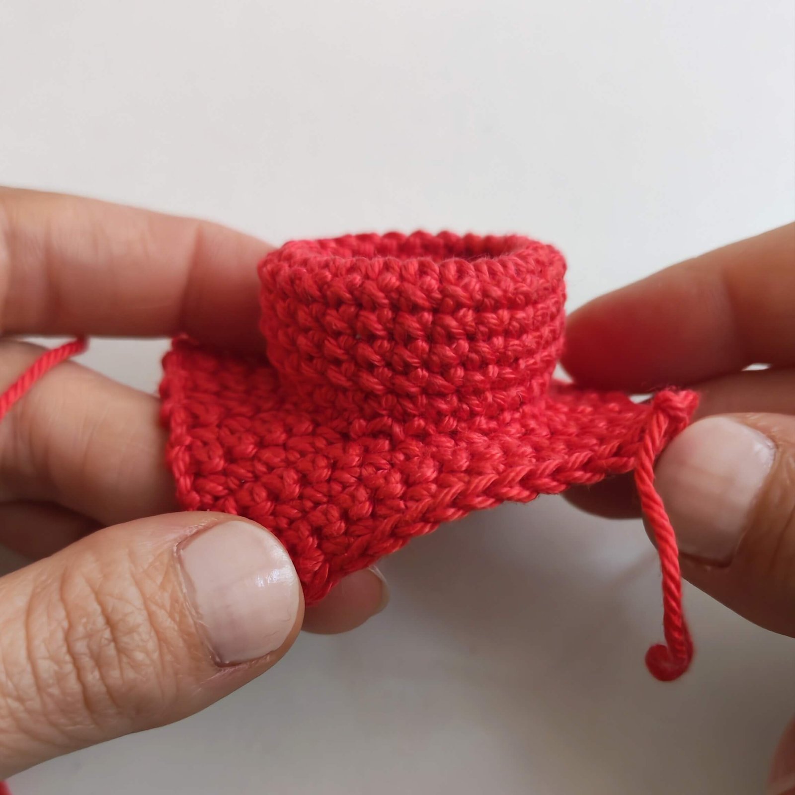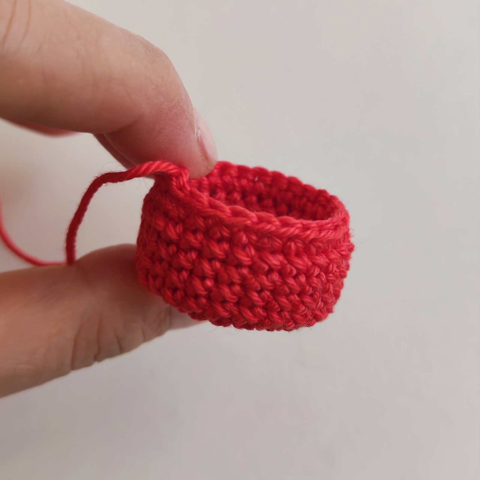 Folding & Joining: Fold the cylinder in half (bringing the last round down to meet the foundation chain). Insert your hook through both layers (the stitches of Round 8 and the loops of the starting chain) and work 25 SC all around to connect them. Fasten off, leaving a long tail for sewing.