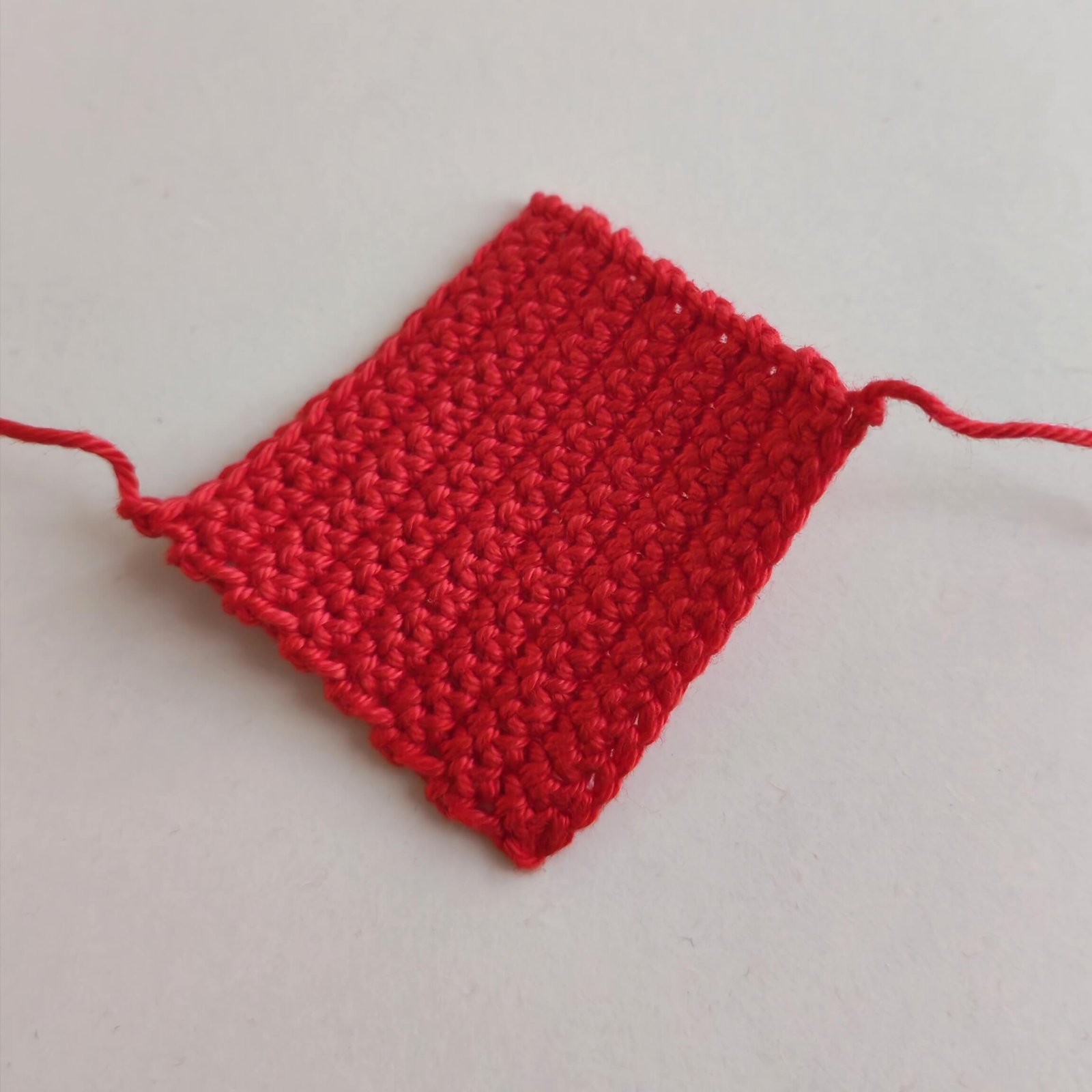 - Row 14: 15 SC. Fasten off. Repeat for the second square.