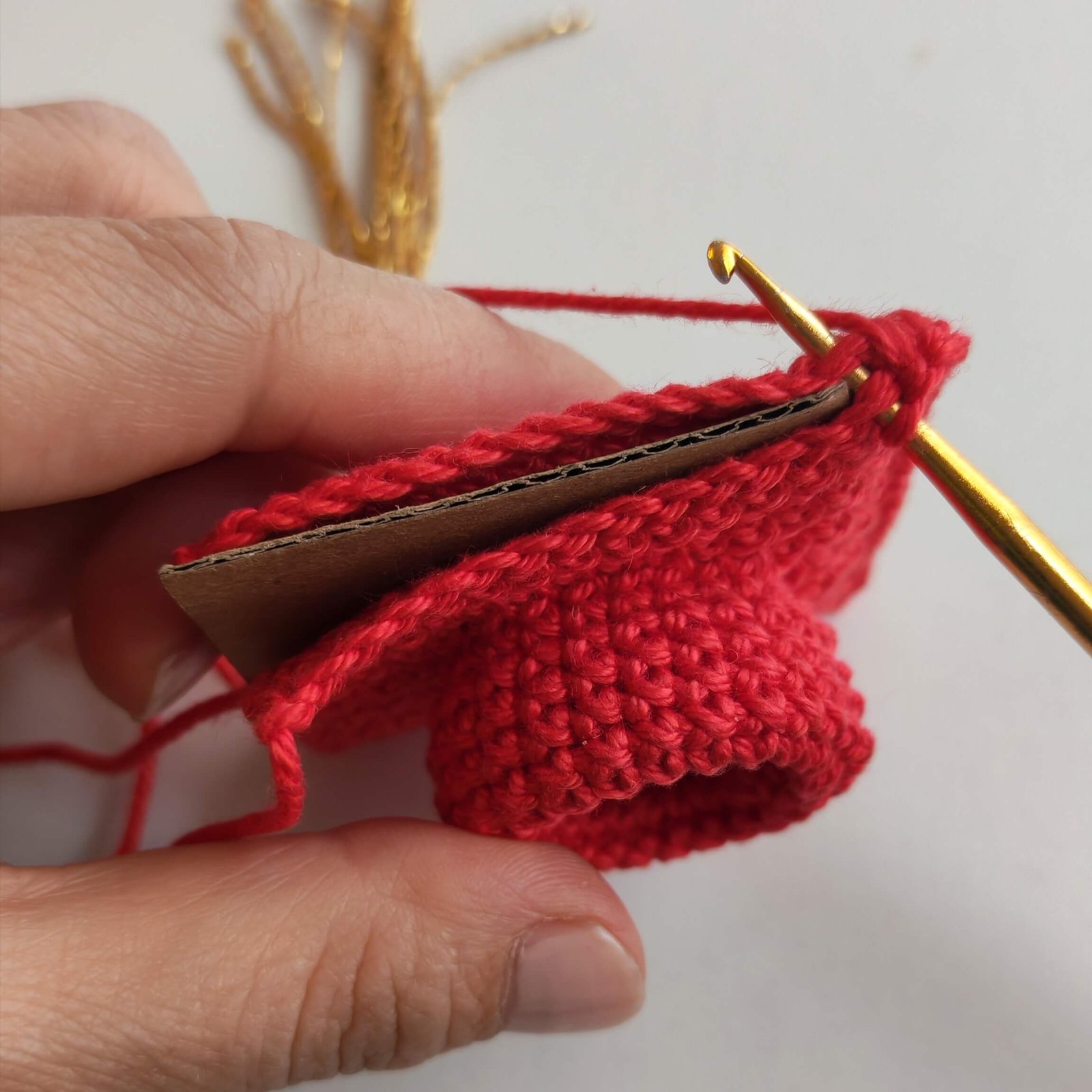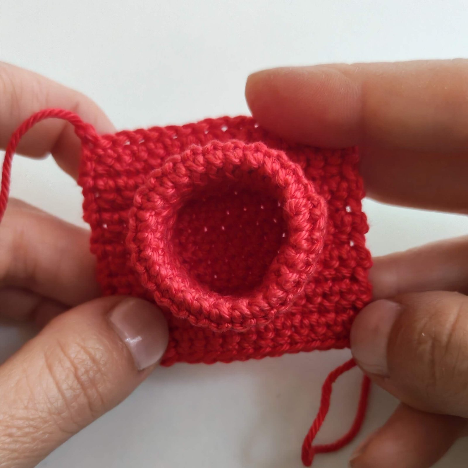 - Important: In each of the four corners, work 3 SC in the same stitch to create sharp, defined corners.