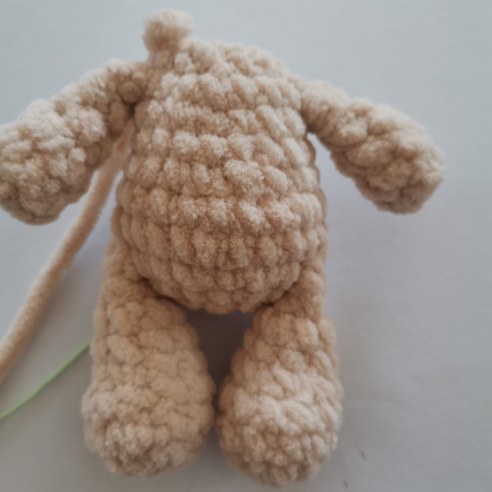 - Construction: Most of the toy is worked in continuous rounds (spirals). The ears are worked in rows.