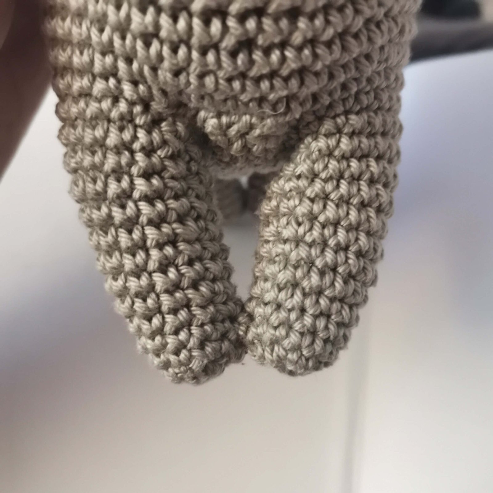 Attach yarn on stitch 10 of the round 1 of the body (first chain between legs I and II)