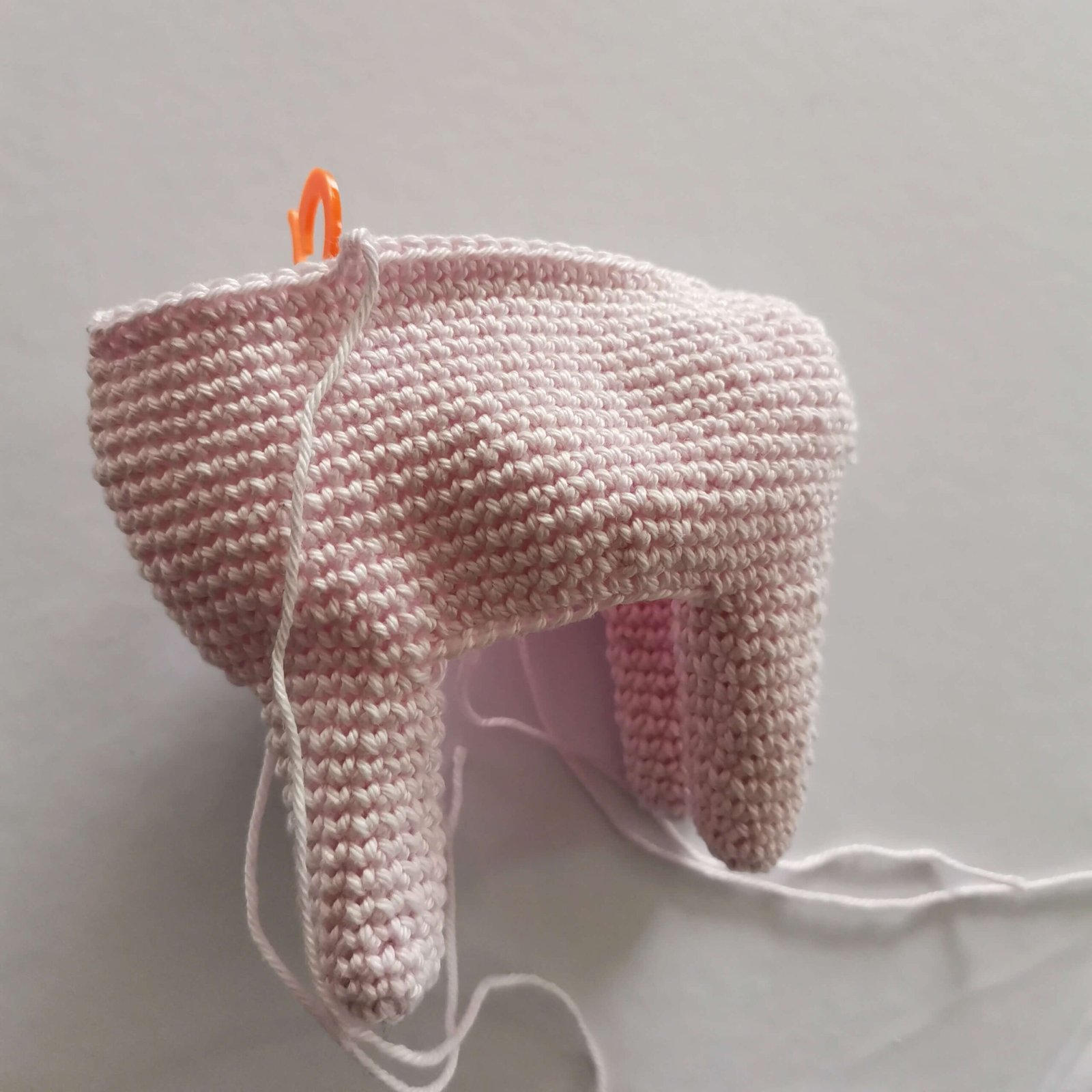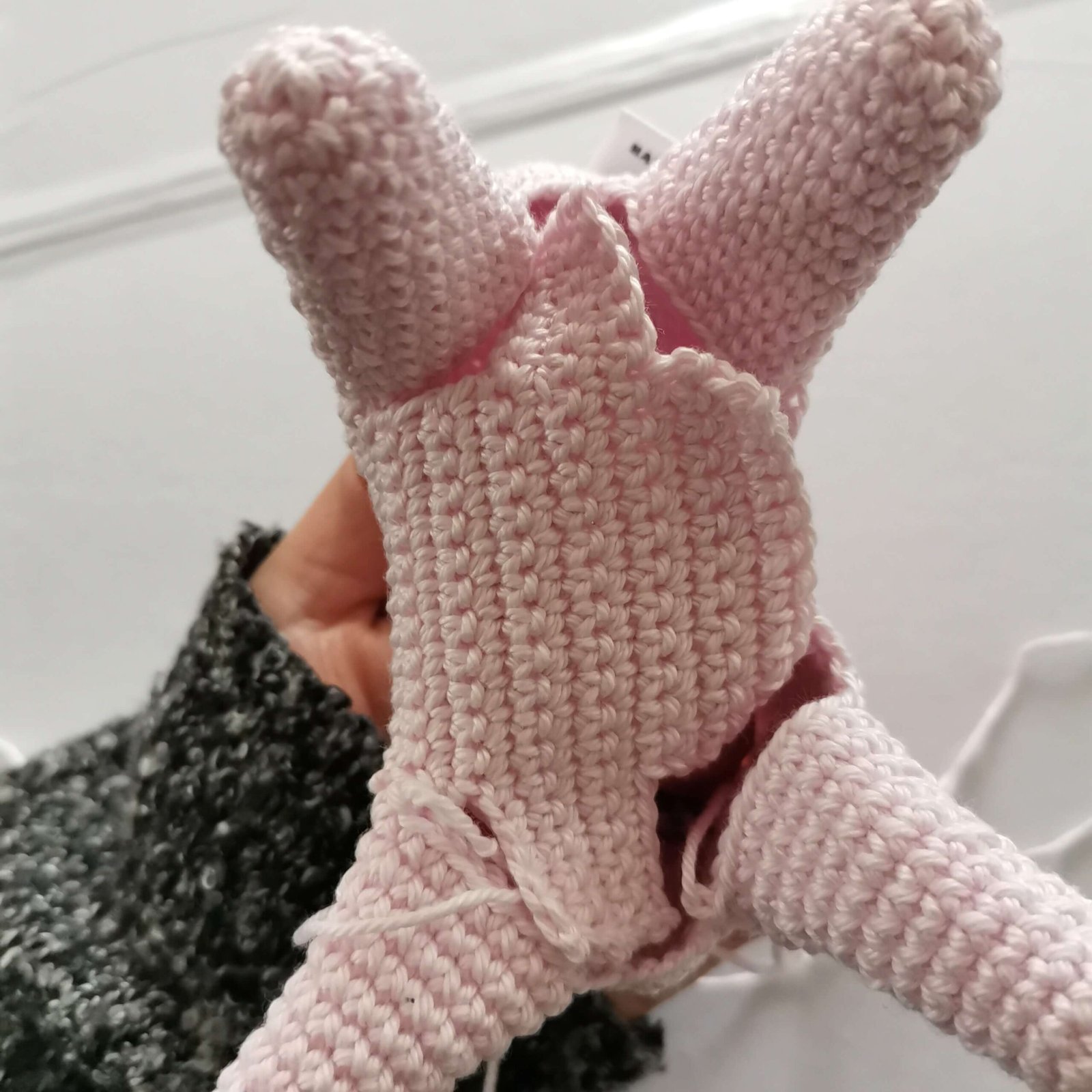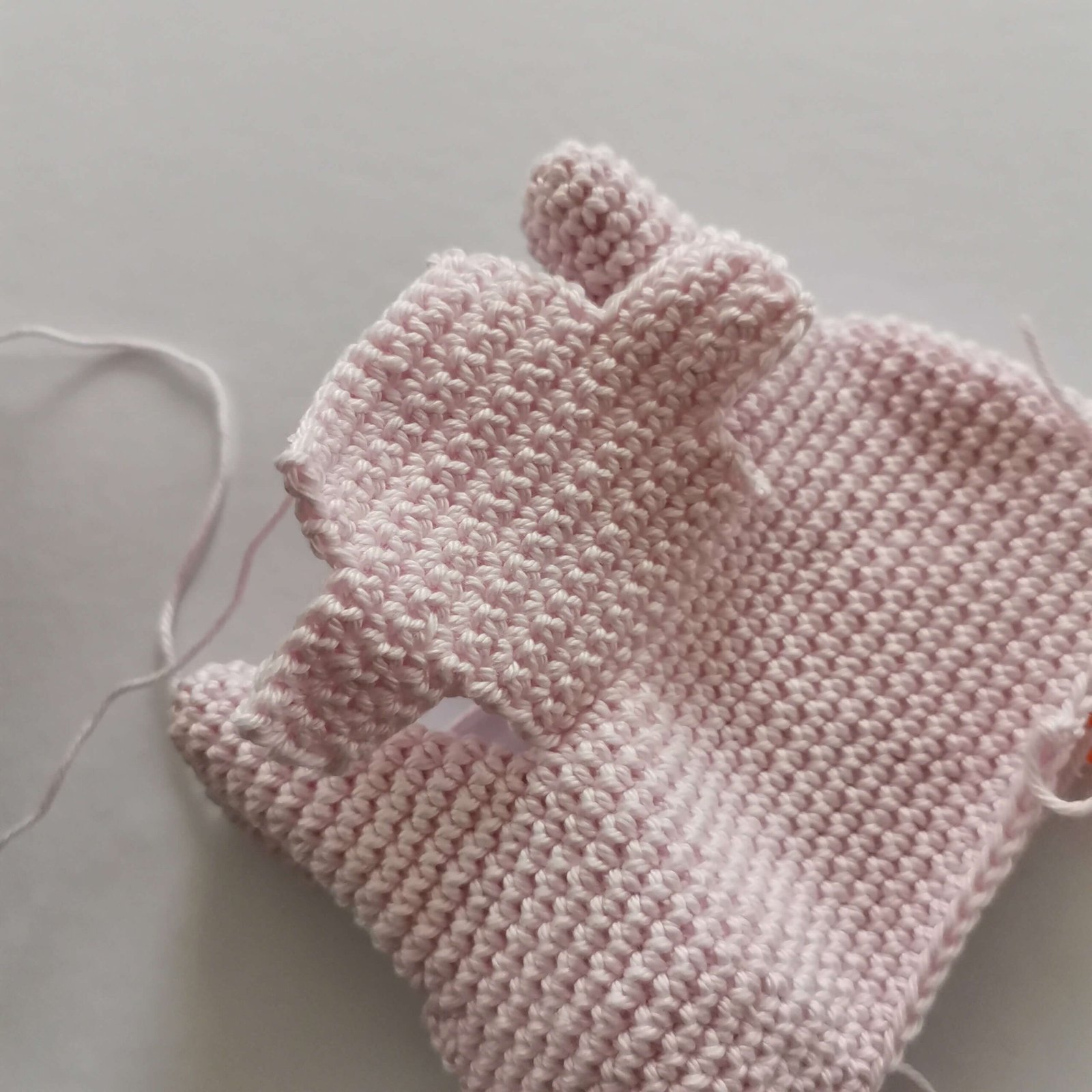Embroidery pink lines on the ears and sew ears to the head on round 23, 9sc apart