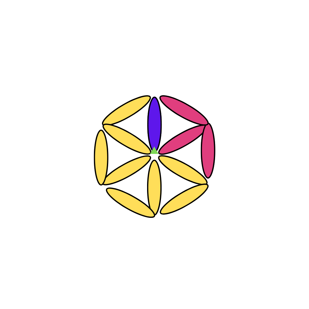Your project begins with a single puff stitch. From there, we build the first round by repeating a 2-puff stitch (two petals meeting at one “eye”) four times: