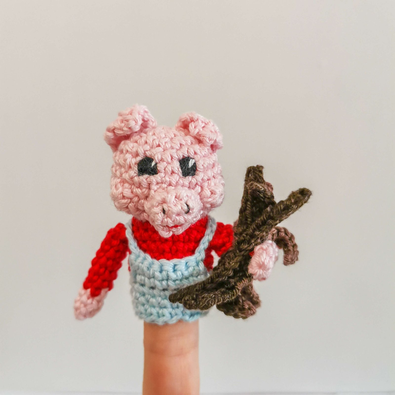 - Sensory Add-ons: Use a small pile of real straw, some sticks from the park, and a brick (or a red block) to make the sensory experience even more realistic while using your crochet finger puppets.