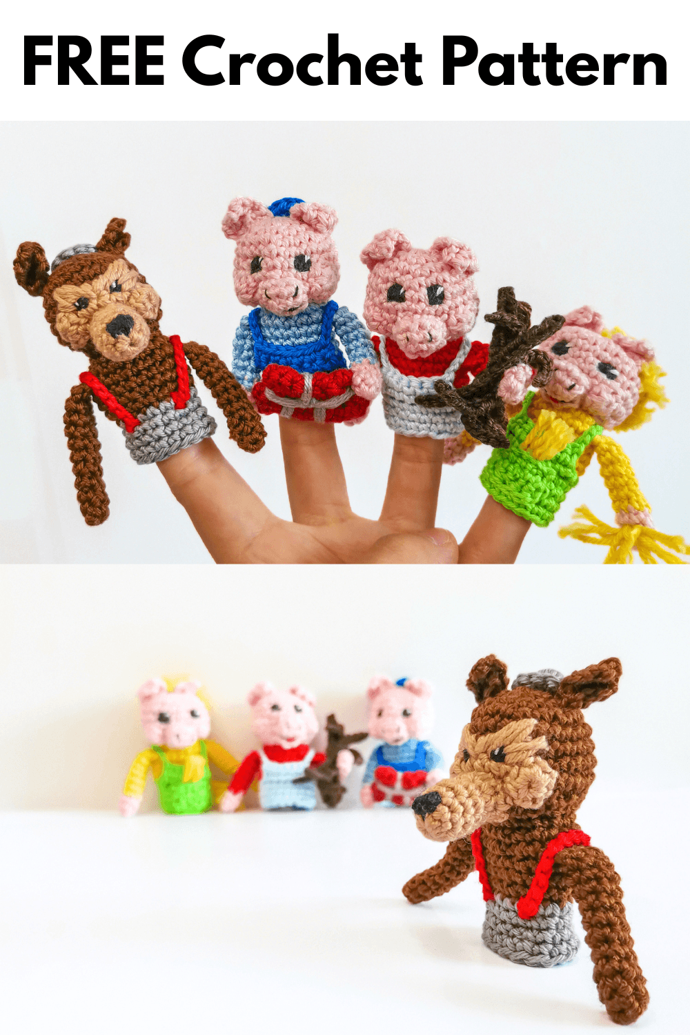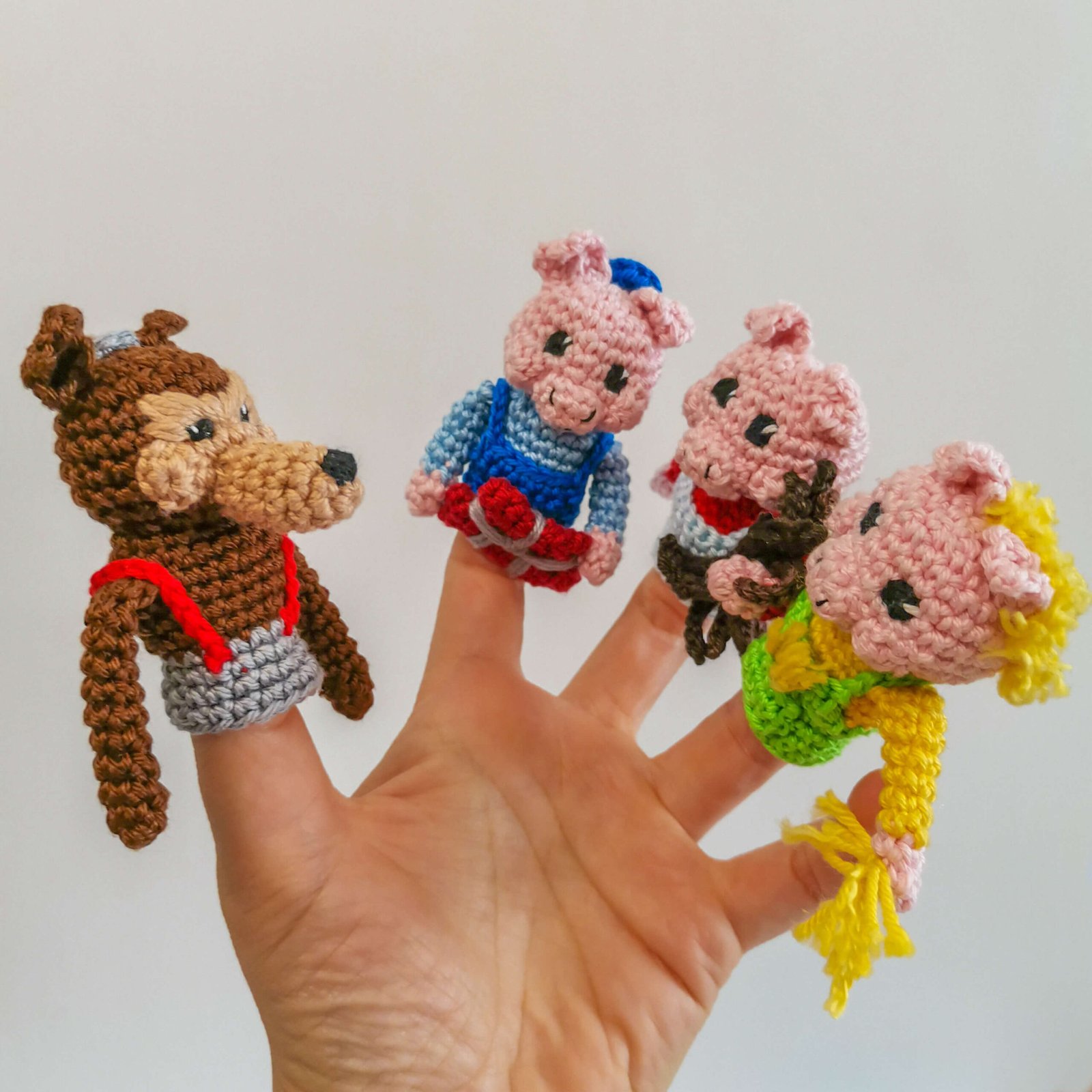 Three Little Pigs Finger Puppets Crochet Pattern by EmmaS Dolls