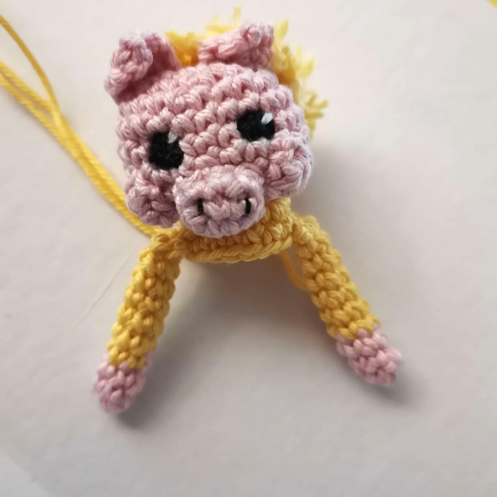 Fasten off and sew the “branch” securely to the pig’s hand.