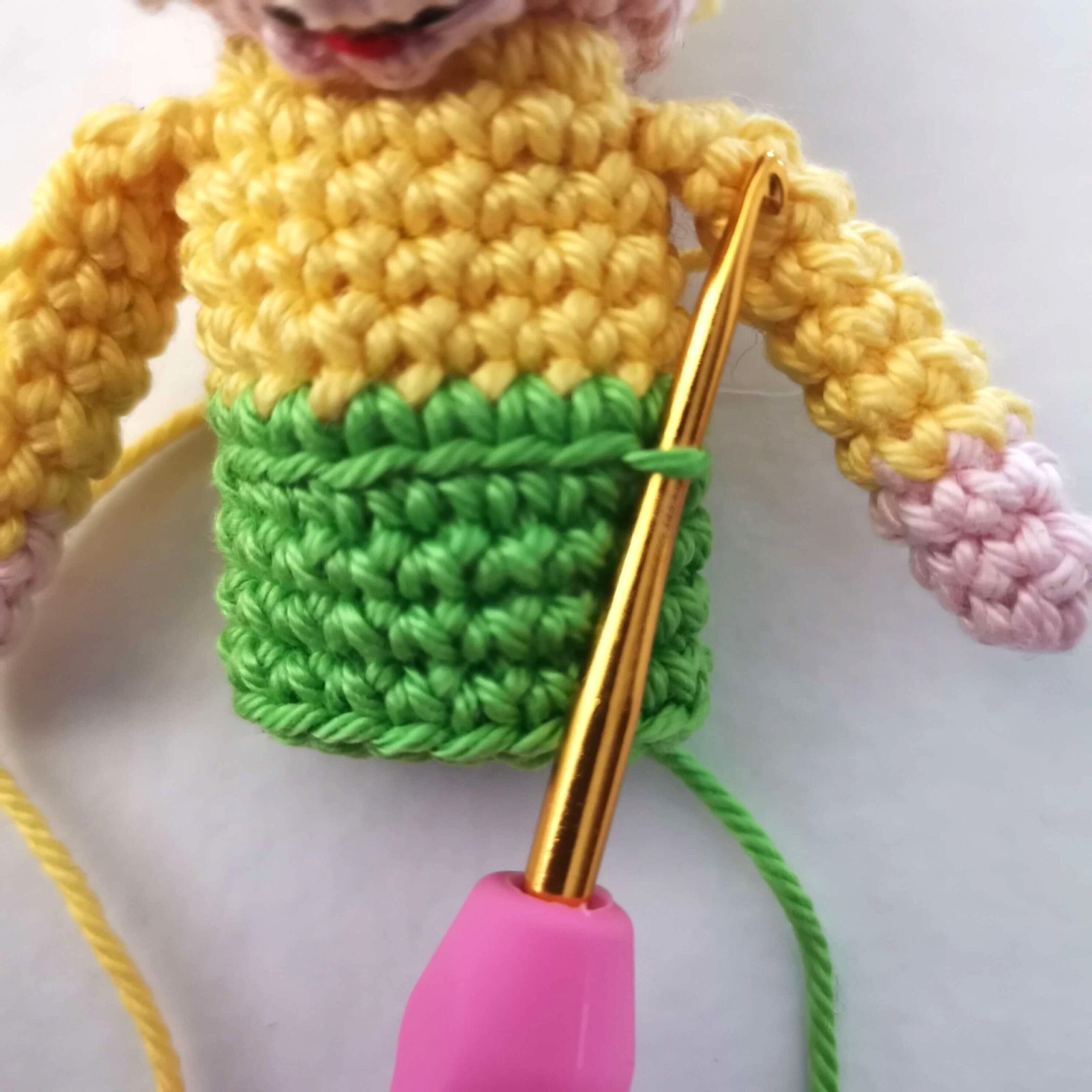 - Pants Color: Switch the green yarn to Dark Blue.