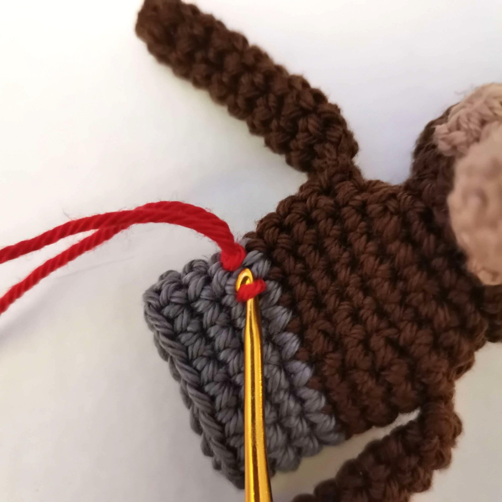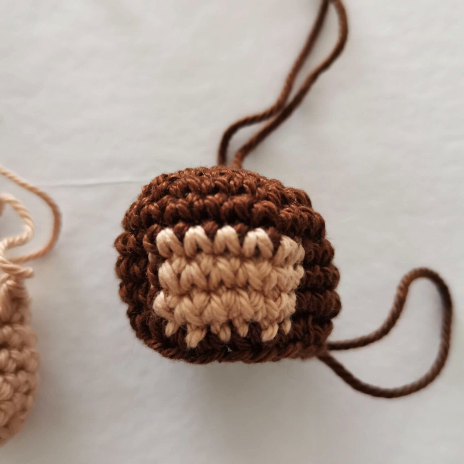 Round 6-8: Brown 9 sc, switch to Light Brown 6 sc, switch back to Brown 9 sc [24]