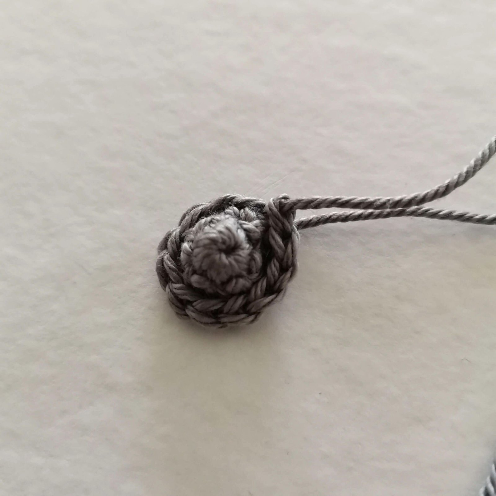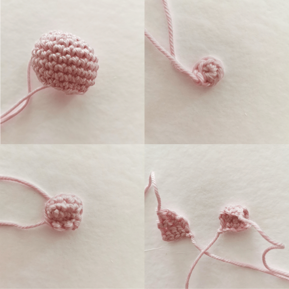 Pull the yarn tail towards the top of the head to make a small indentation at the base.