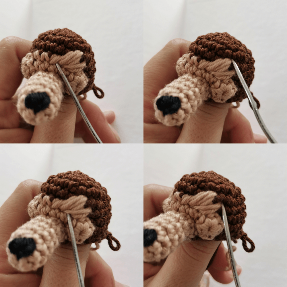 Stuff the muzzle and sew it to the center bottom of the Light Brown part of the head.